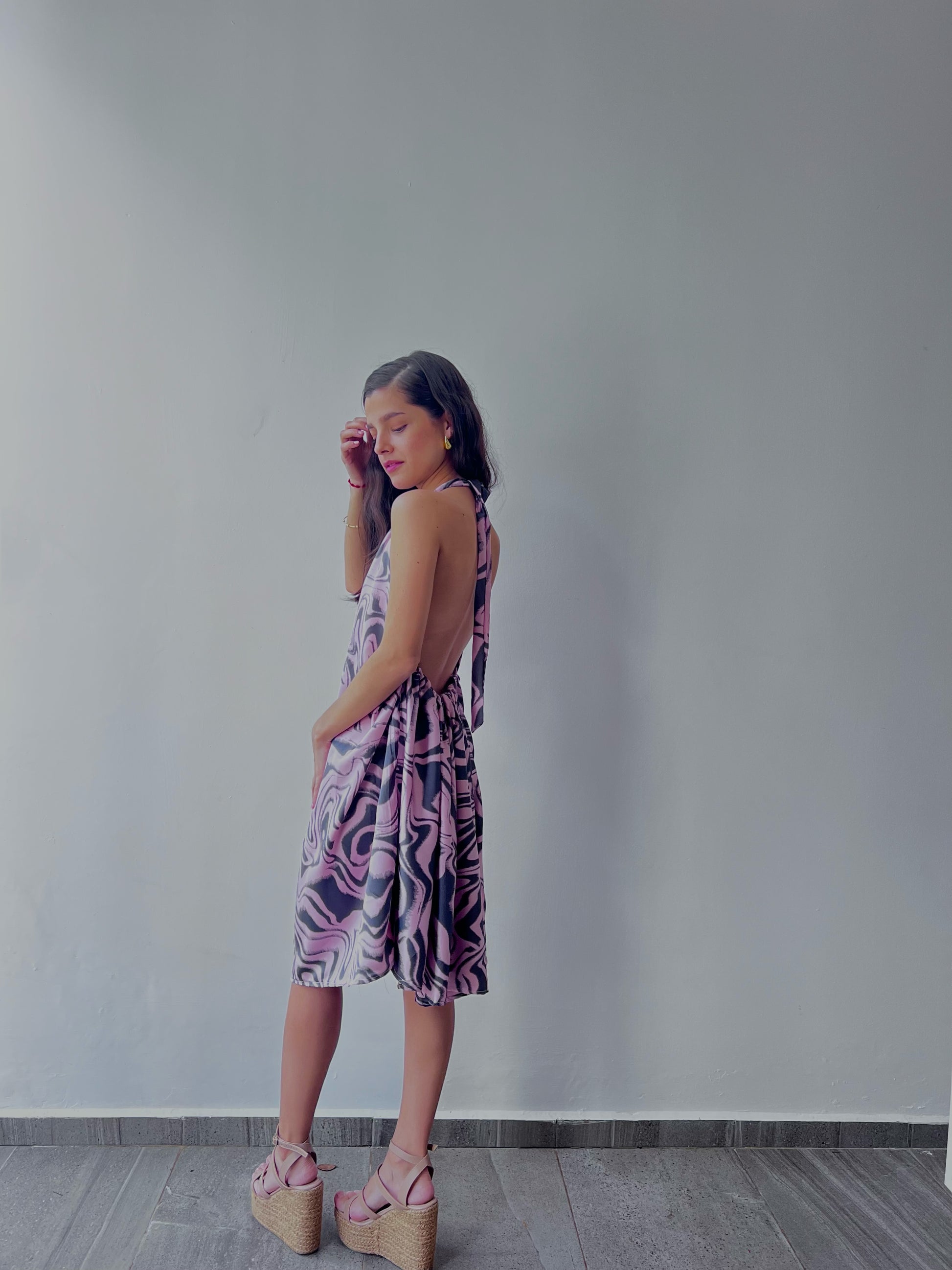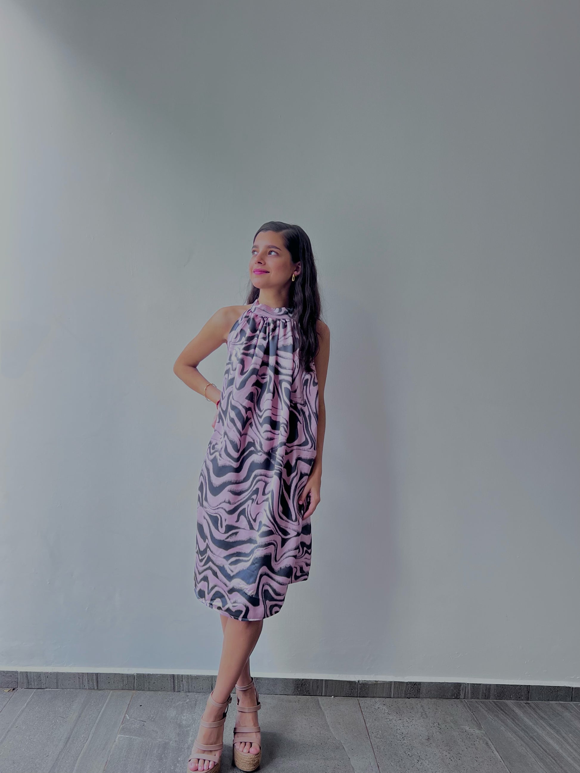 Vestido cuello halter con elástico en la espalda perfecto para ocasiones especiales
